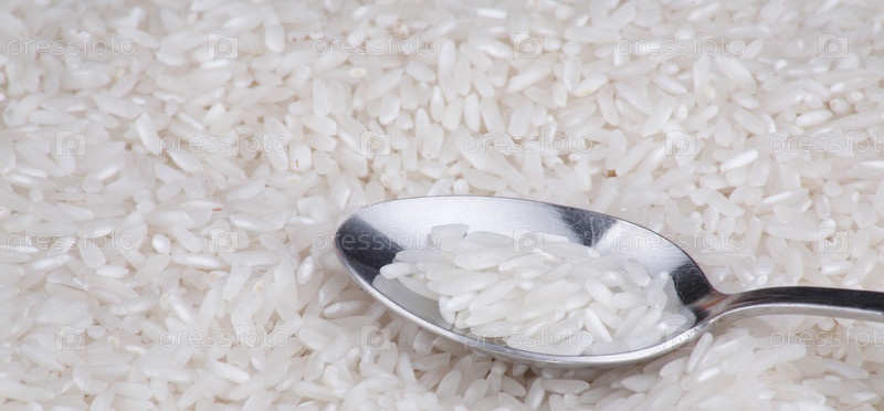 Рисовый пищевой фон и чайная ложка