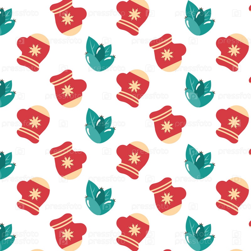 Зимний фон с варежками, ягодами и листьями