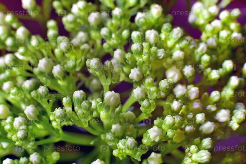 Ветка мелких декоративных цветков в виде бутонов. Фото макрос