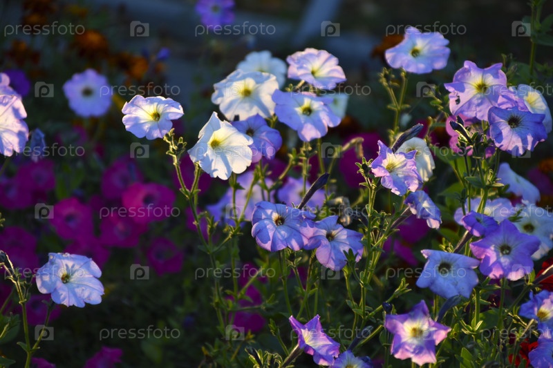 Голубые и голубые цветы петунии. Петуния Джусс. Красивые цветы на клумбе