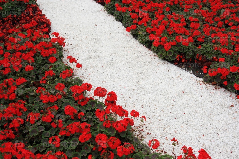 Белая тропинка, окруженная красными цветами