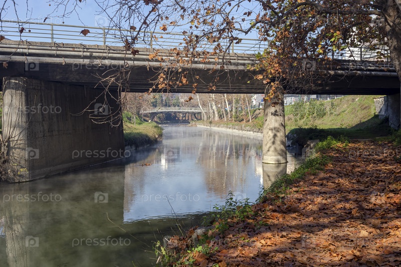 Вид на реку Литеос в Трикале (регион Фессалии, Греция)