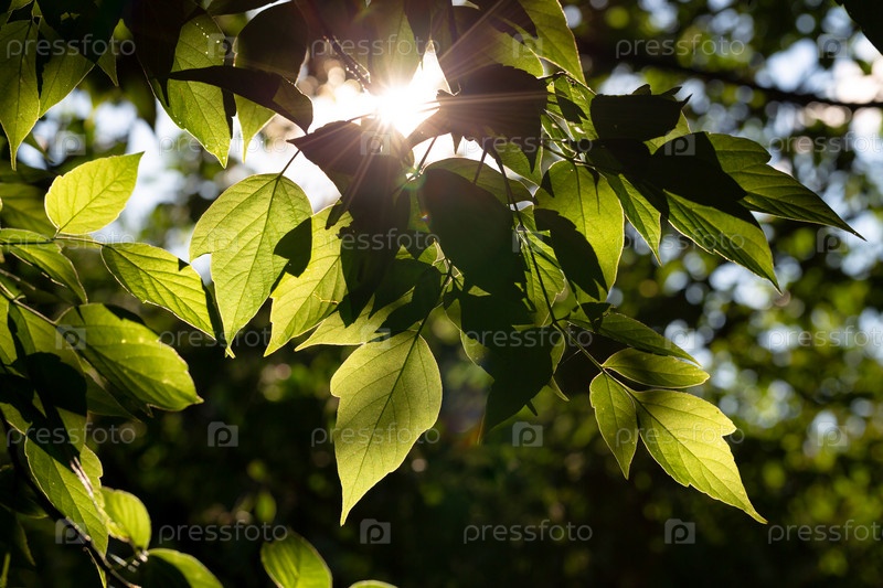Лучи солнца пробиваются сквозь зеленую листву