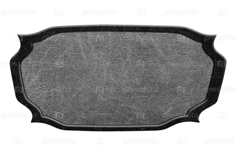 Винтажная кожаная вывеска в темной каменной раме на белом фоне