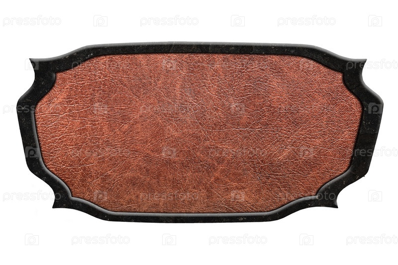 Винтажная кожаная вывеска в темной каменной раме на белом фоне