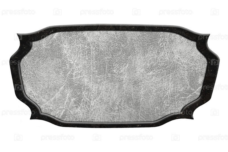 Винтажная кожаная вывеска в темной каменной раме на белом фоне