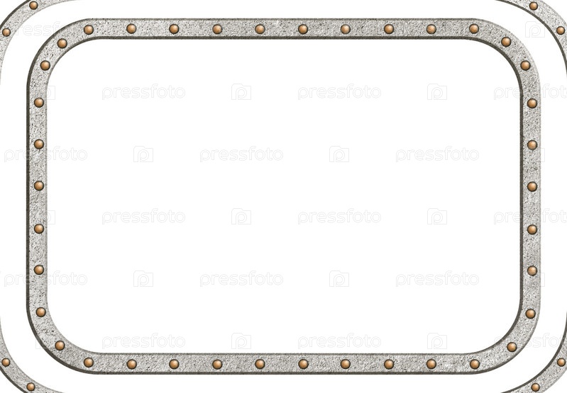 Алюминиевая рама с латунными заклепками в стиле стимпанк, изолированная на белом фоне