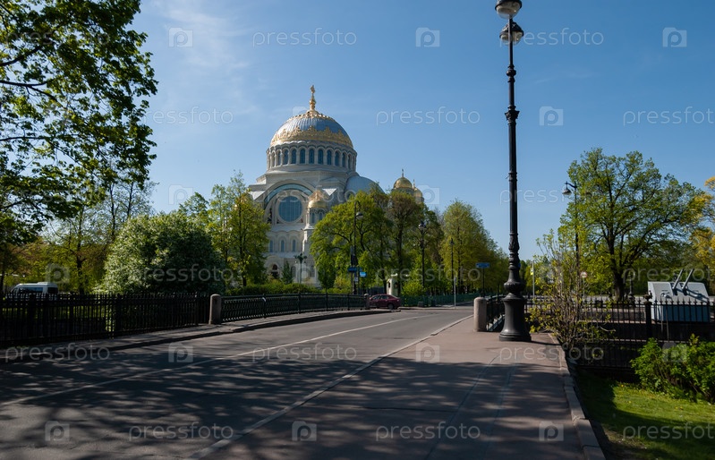 Морской собор Николая Чудотворца 1913 года, Советский мост, пушка героя И.И. Тамбасова. Кронштадт, Санкт-Петербург, Россия