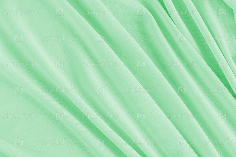 Роскошный праздничный текстиль. Атласный нежный фон. Мягкие волны атласной ткани зеленого цвета. Копировальное пространство