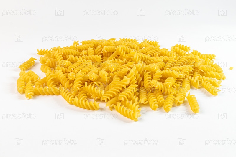 Паста Фузилли лежит на белой поверхности в небольшой кучке