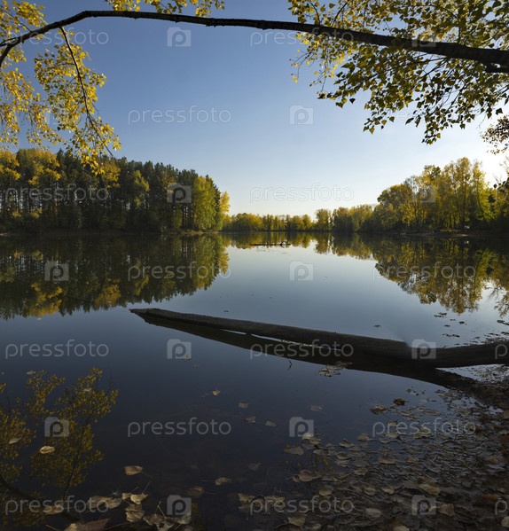 Россия. Юг Западной Сибири, Кузбасс. Безветренный солнечный вечер на Притомских карьерах Новокузнецка в середине осени