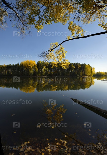 Россия. Юг Западной Сибири, Кузбасс. Безветренный солнечный вечер на Притомских карьерах Новокузнецка в середине осени