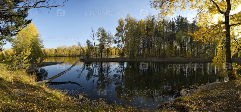 Россия. Юг Западной Сибири, Кузбасс. Безветренный солнечный вечер на Притомских карьерах Новокузнецка в середине осени