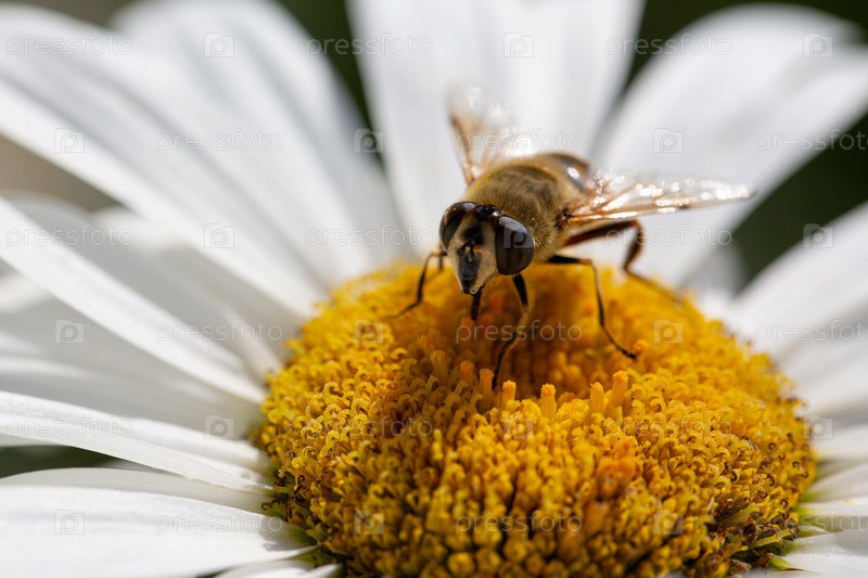 Пчела на белой ромашке