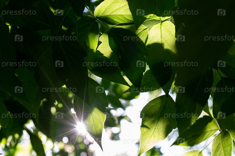 Солнце светит сквозь зеленую листву