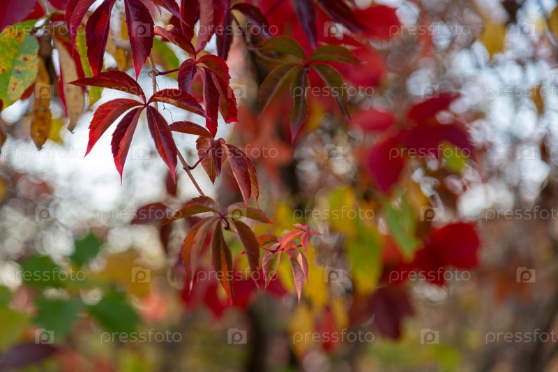Красные осенние листья дикого винограда