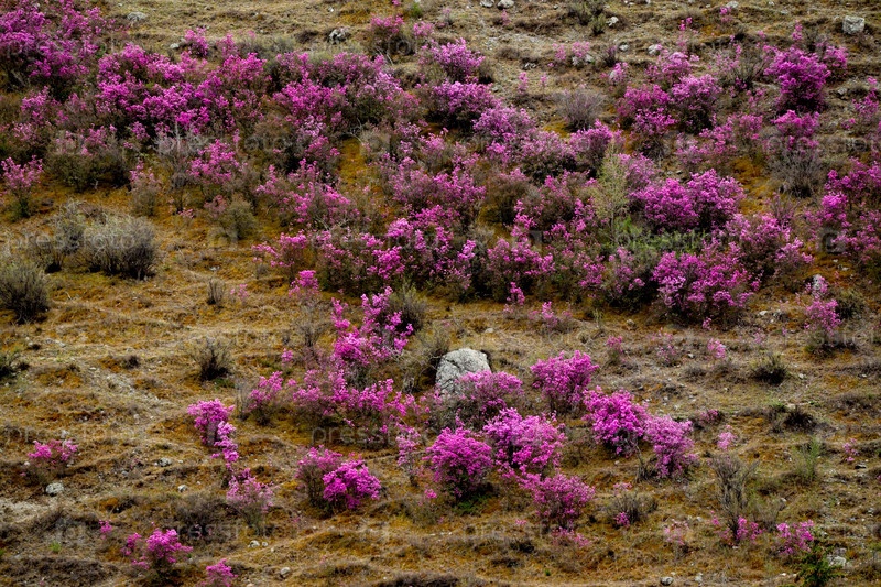 Россия. Юг Западной Сибири, весенние цветы Горного Алтая. Рододендрон. Период его цветения - главное событие весны в Горном Алтае, которое привлекает множество туристов