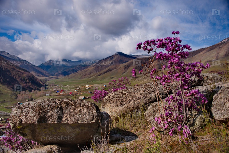 Россия. Юг Западной Сибири, весенние цветы Горного Алтая. Рододендрон. Период его цветения - главное событие весны в Горном Алтае, которое привлекает множество туристов