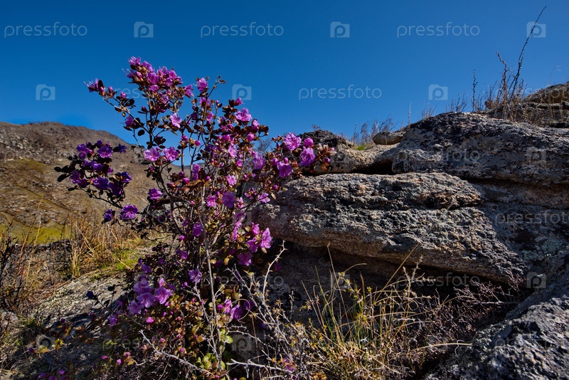 Россия. Юг Западной Сибири, весенние цветы Горного Алтая. Рододендрон. Период его цветения - главное событие весны в Горном Алтае, которое привлекает множество туристов