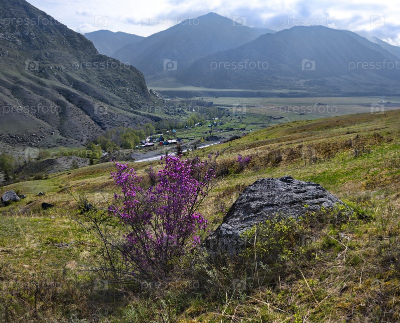 Россия. Юг Западной Сибири, весенние цветы Горного Алтая. Рододендрон. Период его цветения - главное событие весны в Горном Алтае, которое привлекает множество туристов