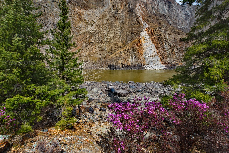 Россия. Юг Западной Сибири, весенние цветы Горного Алтая. Рододендрон. Период его цветения - главное событие весны в Горном Алтае, которое привлекает множество туристов