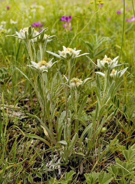 Россия. Юг Западной Сибири, Горный Алтай. Куст воздушного эдельвейса на высокогорных склонах горного хребта близ села Усть-Кан