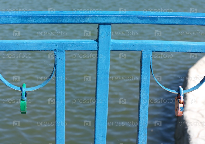 Перила над прудом в сухой солнечный летний день