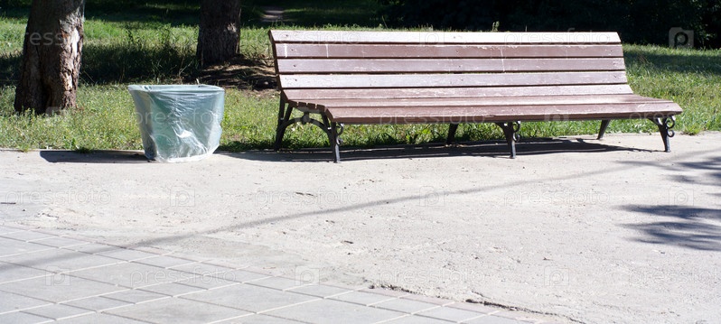 Скамейка в парке в сухой солнечный летний день