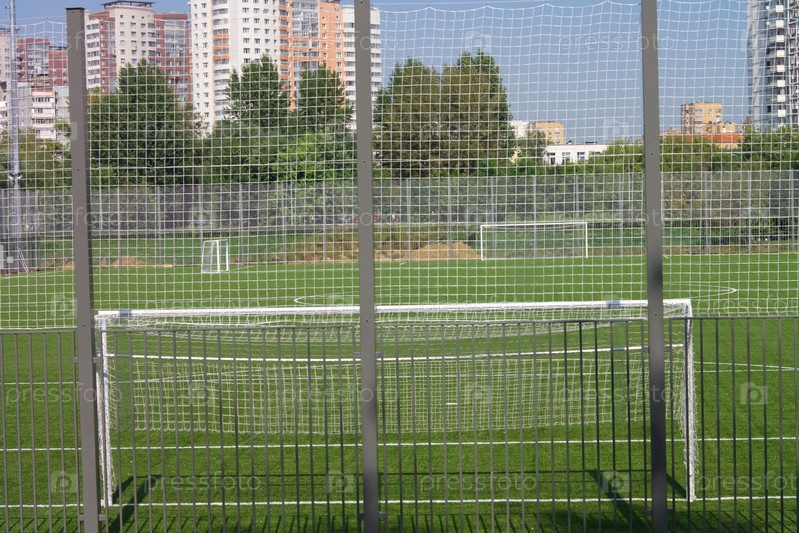 Футбольное поле возле забора в солнечный день