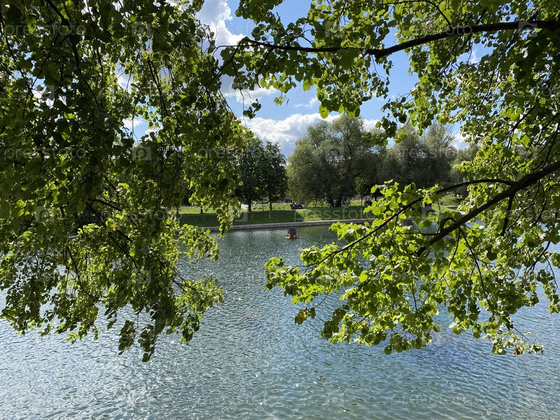 Лето в городском парке в сухой солнечный день