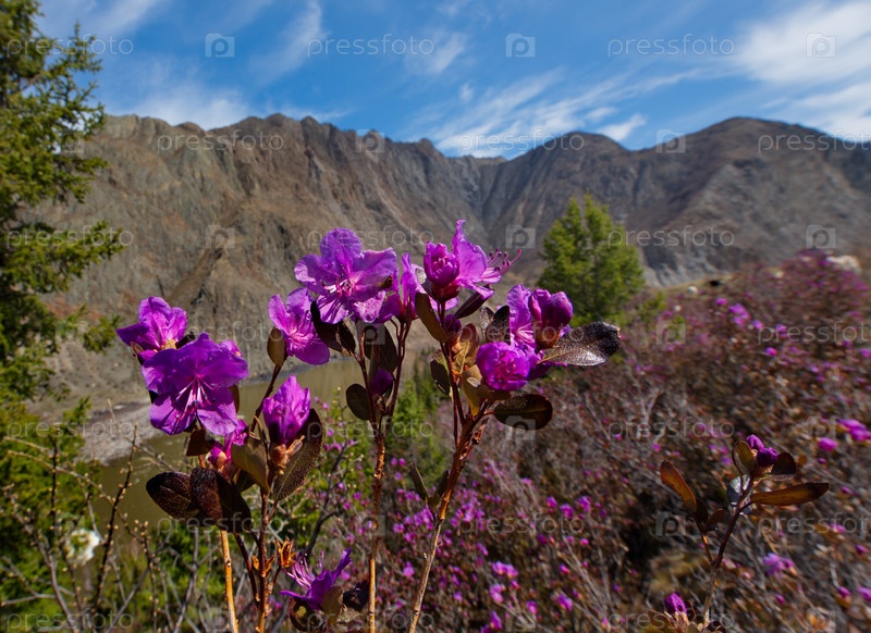 Россия. Юг Западной Сибири, весенние цветы Горного Алтая. Рододендрон. Период его цветения - главное событие весны в Горном Алтае, которое привлекает множество туристов