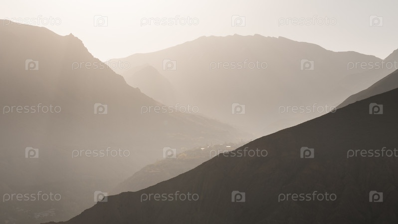 Маленькая деревня на рассвете в иранских горах, Иран