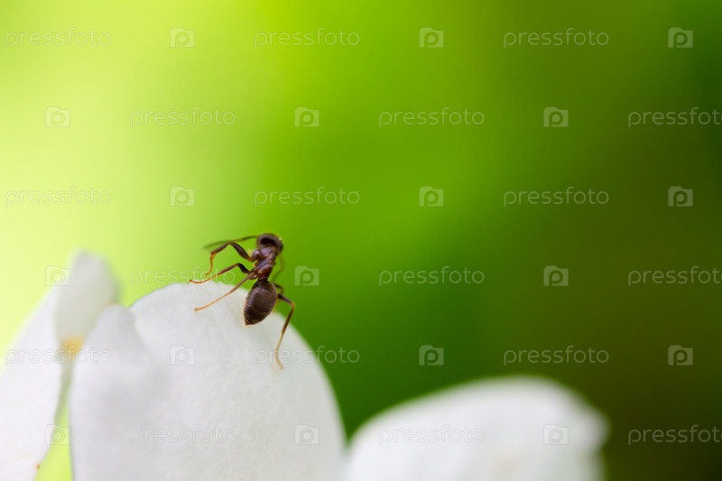 Муравей на белом лепестке