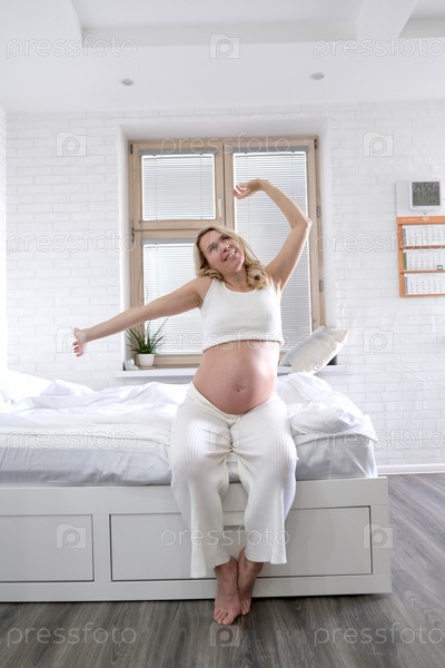 Будущая мама тянется после сна. Беременность