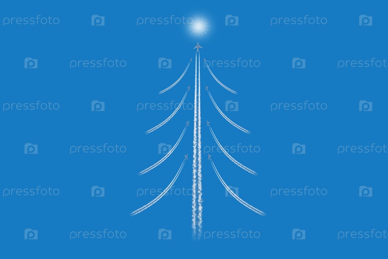 Рождественская елка, похожая на фигуру из следов самолетов на фоне голубого неба