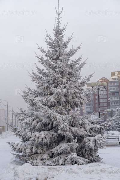 Замерзшие деревья в сильный мороз в парке