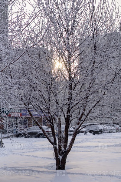 Замерзшие деревья в сильный мороз в парке
