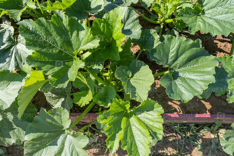 Молодые ростки кабачков, растущие на огороде