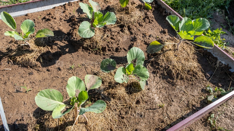 Молодые побеги рептилии или Raphanus sativus, растущие в саду