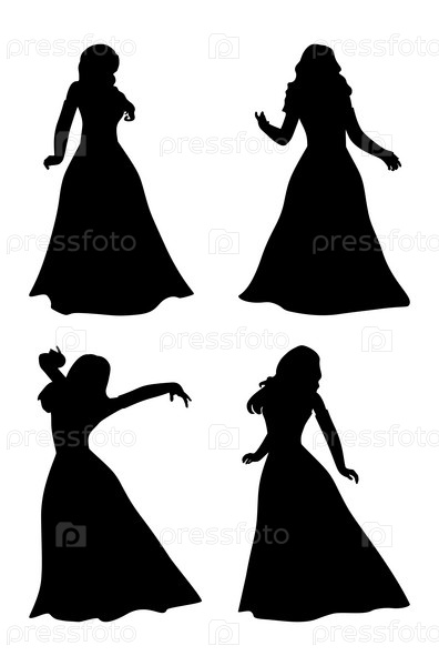 Силуэт женщины с длинными волосами в бальном платье