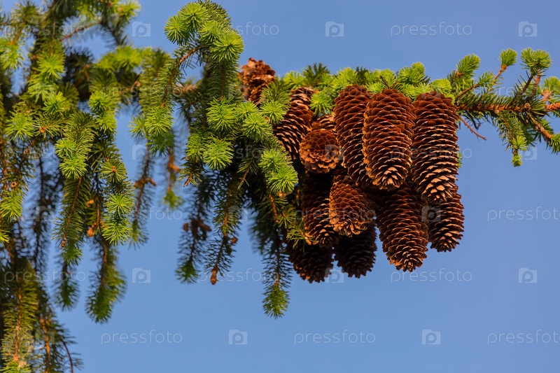Шишки на ветке ели