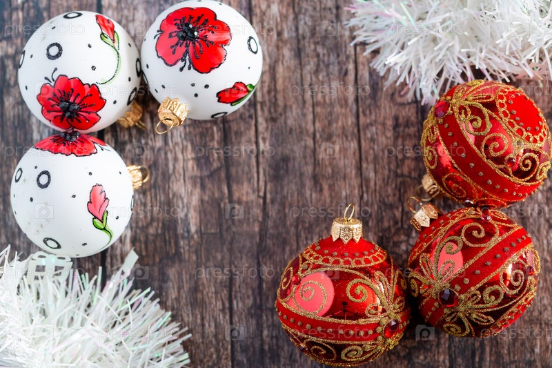 Новогодние шары на деревянном фоне