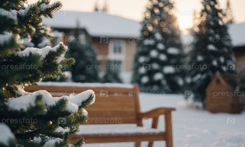 Украшенная елка в снегу. Солнечный зимний новогодний пейзаж