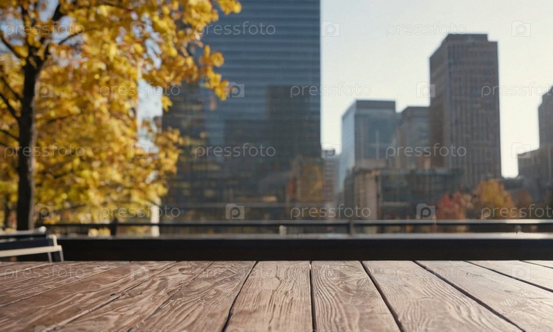 Красивый деревянный стол на фоне офиса. Бизнес-подиум для презентации продукта