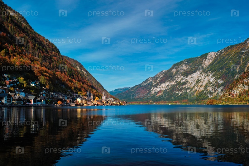 Деревня Гальштат на озере Гальштаттер-Зее в австрийских Альпах. Зальцкаммергут, Австрия