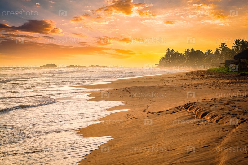 Тропический закат на океанском пляже. Хиккадува, Шри-Ланка