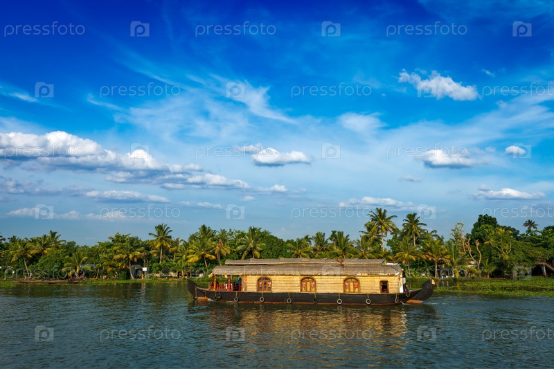 Плавучий дом на заводях Кералы, Индия