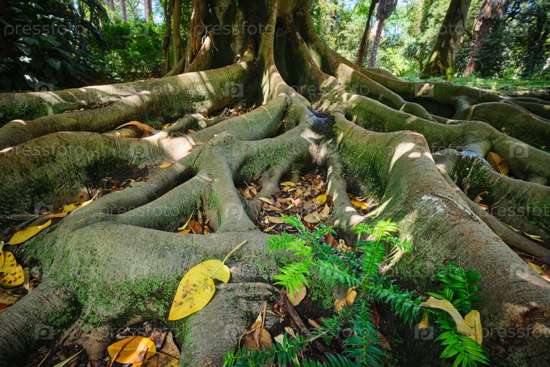 Ствол и корни фикуса макрофиллы крупным планом