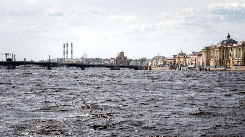 Вид с Невы на церковь Успения Пресвятой Богородицы в Санкт-Петербурге