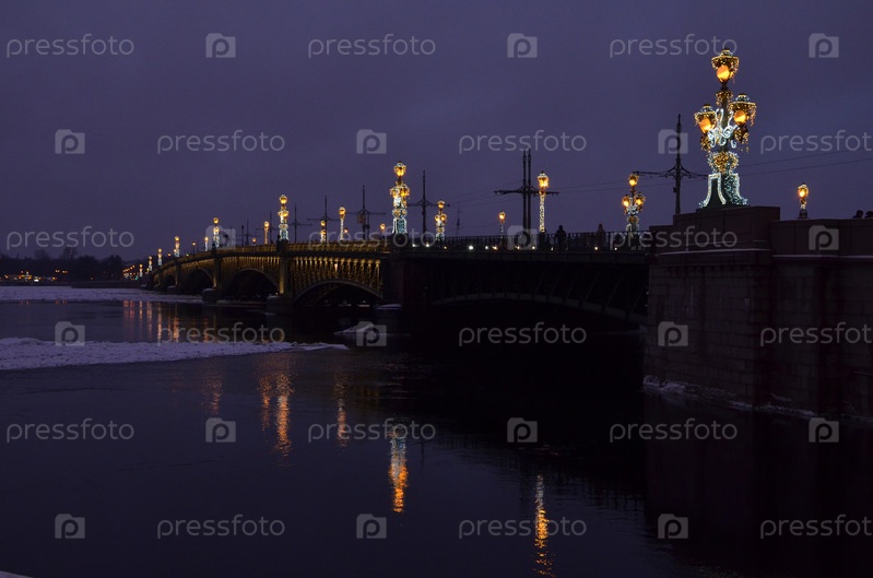 Троицкий мост в Санкт-Петербурге, украшенный к Новому году